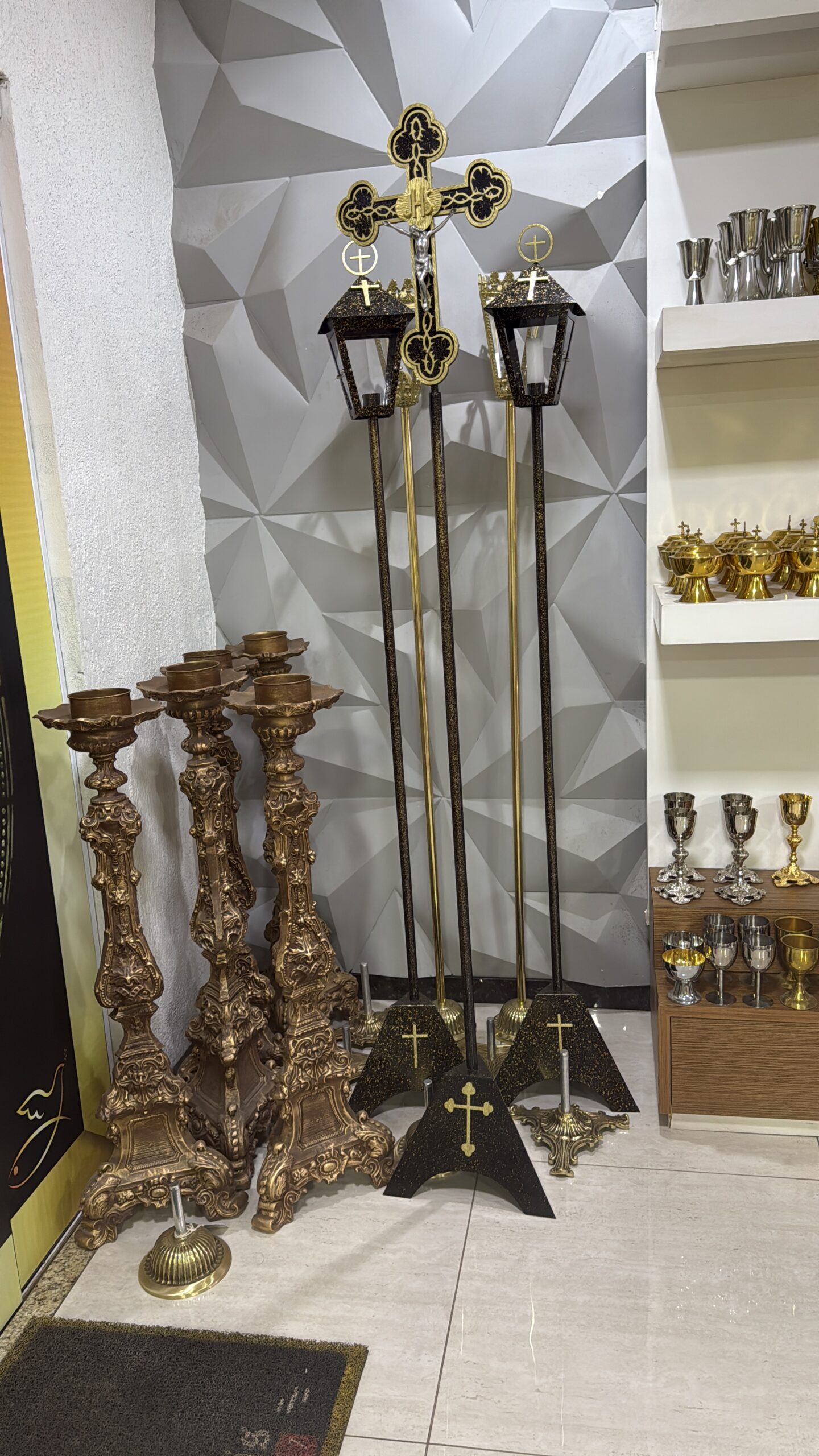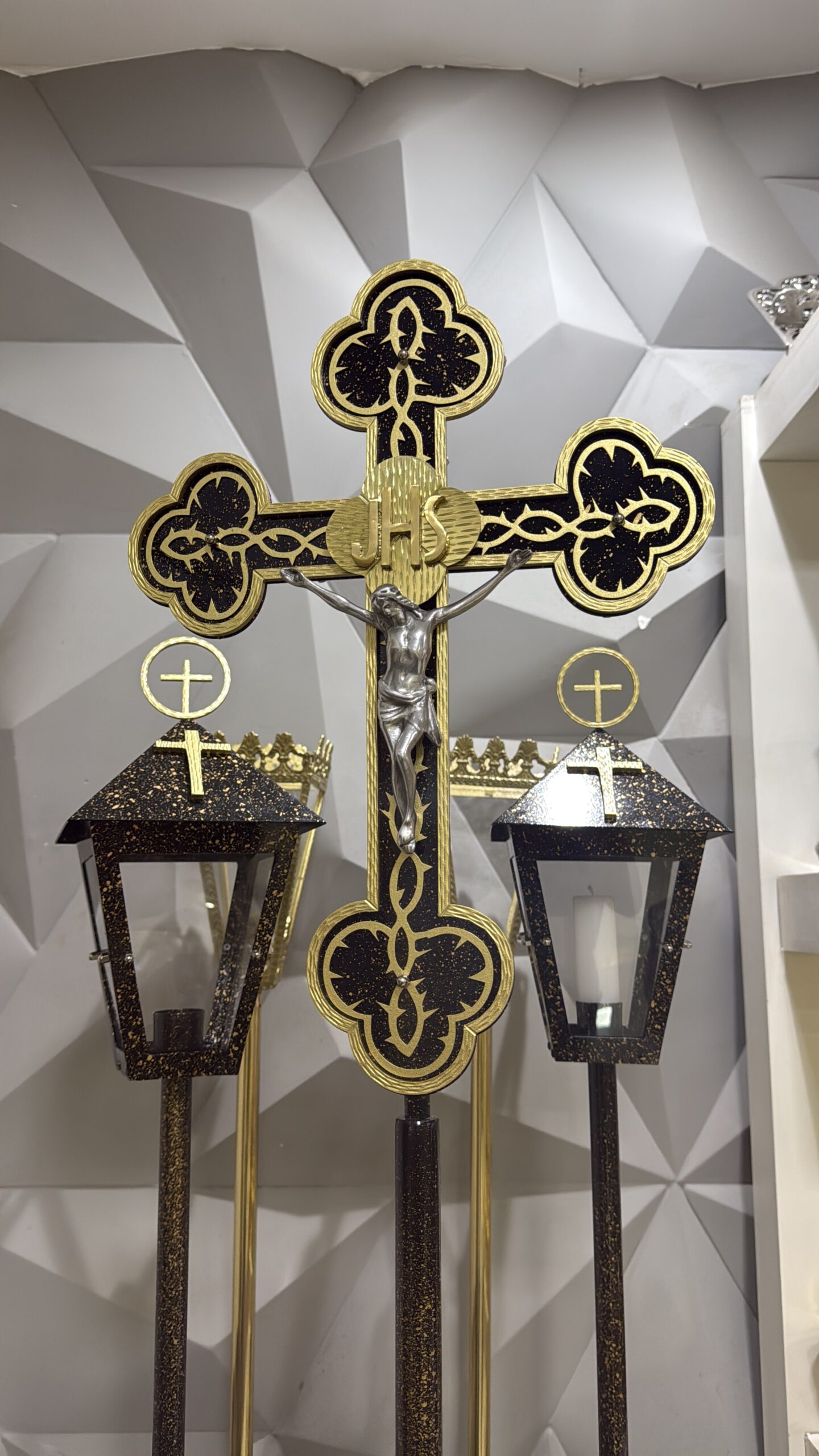 Cruz coroa de espinhos marmorizada – 1.70 altura – Acompanha haste, cruz e base.